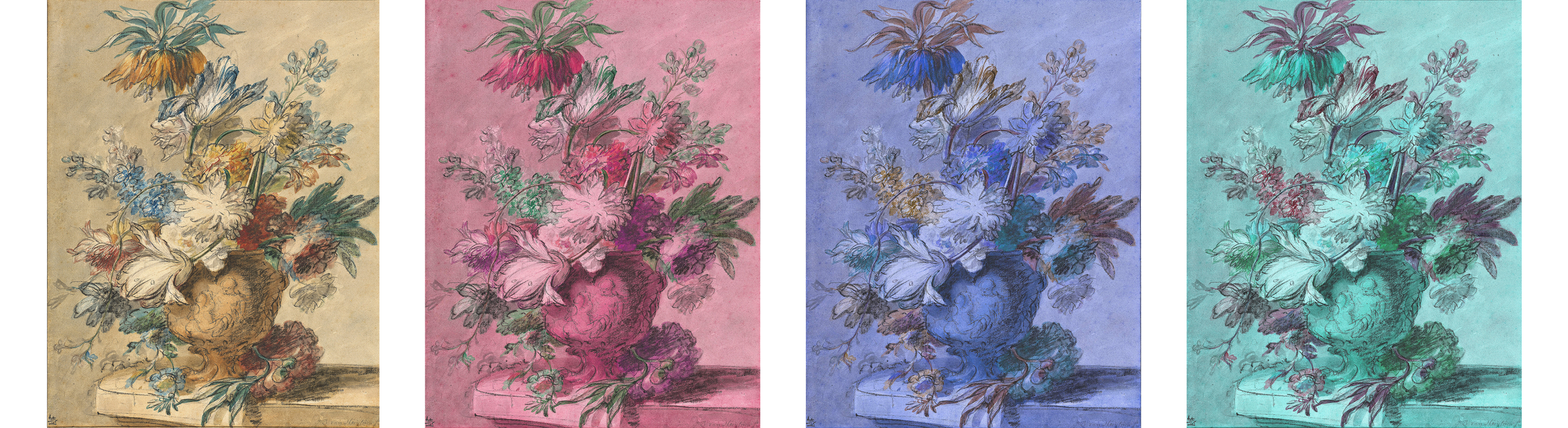 Beyond his paintings, Van Huysum was also a skilled draftsman. His drawings, ranging from swift studies of individual blossoms to carefully finished sheets, reveal the rigor of his observation and the careful planning that lay beneath the apparent naturalness of his bouquets. Many functioned as preparatory studies, while others were prized as works of art in their own right. Together they demonstrate the intellectual discipline and artistry that sustained his brilliance.
